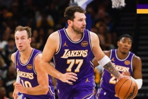 賽后,湖人官方發布贏球海報,封面人物為東契奇和肯納德。