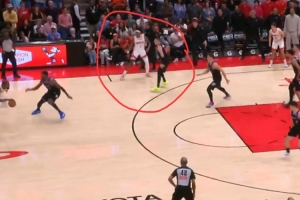 火箭主場123-122險勝熱火,最后一攻阿門補籃絕殺,在他發邊線球之后是希羅和他對位,但希羅注意力一直在持球的杜蘭特這邊,完全漏掉了偷偷跑到籃下的阿門。