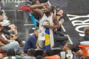 比賽中幾名老鷹隊球迷不停地高喊著:“追夢真爛!追夢真爛!”作為回應(yīng),追夢徑直走向替補席,瞇起雙眼——似乎是在尋找那些根本就不在那里的亞特蘭大老鷹隊總冠軍旗幟。