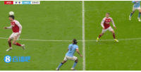 體育資訊03月23日訊 聯賽杯決賽,阿森納vs曼城,第29分鐘,B席與特羅薩德空中對抗,從身后撞倒了特羅薩德!