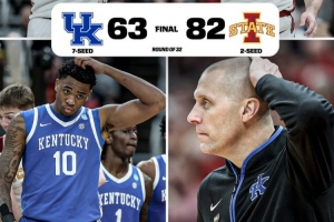 體育資訊3月23日訊 今日瘋?cè)?2強(qiáng)賽,愛(ài)荷華州立大學(xué)以82比63大勝肯塔基大學(xué),再次將這支傳統(tǒng)勁旅擋在甜蜜16強(qiáng)門外。