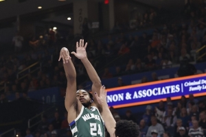 卡梅隆·托馬斯為雄鹿出戰(zhàn)18場(chǎng),場(chǎng)均10.7分1.6籃板1.9助攻。