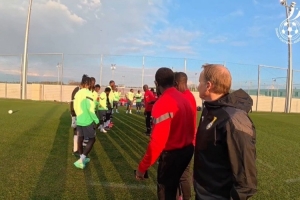 曼城前鋒塞梅尼奧來到加納國家隊報到,隊友們列成兩排,以拍打的方式對他表示祝賀。