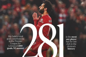 利物浦盤(pán)點(diǎn)薩拉赫數(shù)據(jù):