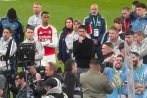 謝爾基領完獎牌后,在失落的阿森納球員前面自拍??