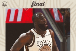 賽后,勇士官方發(fā)布贏球海報,封面為追夢怒吼瞬間。