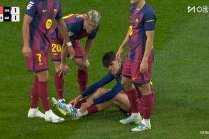 體育資訊04月05日訊 西甲第30輪,馬競對陣巴薩。60分鐘,貝爾納爾受傷坐在地上,被孔德換下。