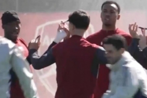 體育資訊4月7日訊 據天空體育拍到的鏡頭,阿森納今日的訓練中整出了新活。