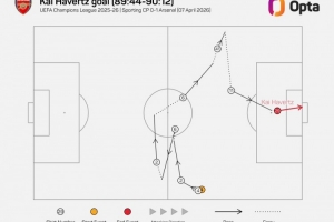數據統計顯示,這是阿森納本賽季歐冠聯賽中第四粒由替補球員連線取得的進球,也是單賽季歐冠聯賽任一球隊由替補球員連線進球之最。