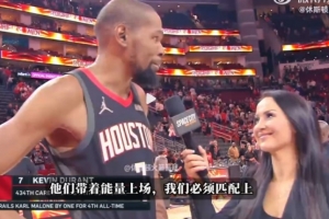 體育資訊3月14日訊 NBA常規(guī)賽,火箭107-105擊敗鵜鶘。賽后杜蘭特接受記者瓦妮莎的場邊采訪。
