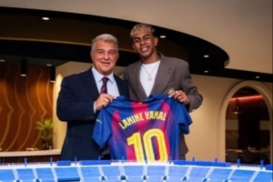 在巴薩大選即將到來之際,亞馬爾更新社媒曬出和拉波爾塔的合照,并配上紅藍心表情。