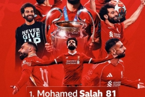 薩拉赫迎來利物浦生涯第81次歐戰(zhàn)出場,超越卡拉格成為隊(duì)史歐戰(zhàn)出場最多球員,杰拉德以73場位居第3。