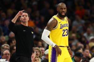 賽后,湖人主帥雷迪克接受了記者采訪。談到詹姆斯,他說道:“我告訴他,我看了你23年的NBA比賽和3年的高中比賽,從未見過你這樣全力撲球。他(詹姆斯)說我說的沒錯,他確實從未這樣做過。這真是太棒了。我知道他明天會感到酸痛,但這是一次贏得比賽的撲救?!?/p>