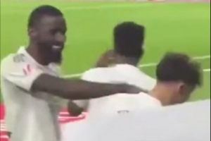 體育資訊3月15日訊 《阿斯報》曬視頻,發現呂迪格在慶祝居萊爾進球時,下意識打了皮塔奇一下。