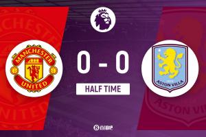 上半場傷停補時1分鐘,半場結束,曼聯暫0-0維拉。