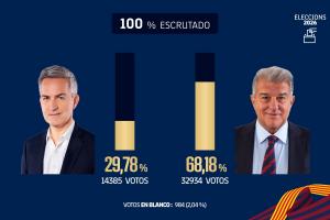 巴薩俱樂部主席選舉結束,拉波爾塔成功當選。他獲得了32934張票,得票率68.18%。《世界體育報》指出,在巴薩俱樂部歷史上的所有主席選舉中,得票數比拉波爾塔更高的只有2010年的羅塞爾,當時他獲得了35021張票。而得票率比拉波爾塔更高的只有1997年的努涅斯,當時他的得票率是76.31%。