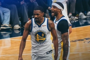 賽后勇士官方發布贏球海報,封面人物為梅爾頓和小佩頓。