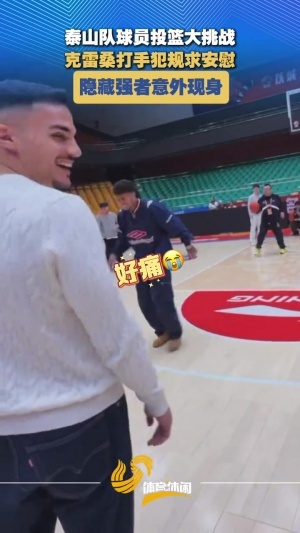 本場比賽山東泰山7名球員來到現場觀戰,山東體育曬出視頻,泰山球員們進行了投籃挑戰。