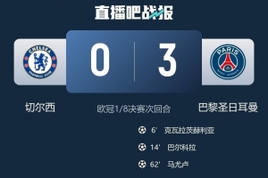 體育資訊3月18日訊 歐冠1/8決賽次回合,切爾西主場0-3不敵巴黎圣日耳曼,總比分2-8不敵對手,無緣八強。