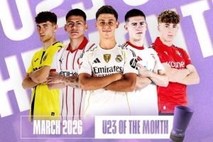 體育資訊3月19日訊 西甲官方公布聯賽3月最佳U23球員候選,居萊爾、埃切維里等5名球員獲提名。