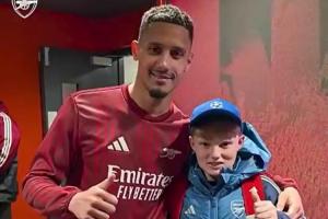 阿森納官方曬出視頻,薩利巴對(duì)球童說道:還好嗎?上次很抱歉。隨后薩利巴將自己的球衣送給這名球童