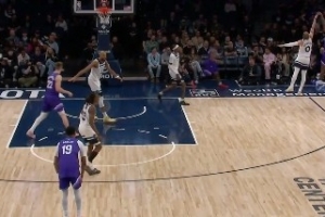 GIF-迪文岑佐撲防森薩博被吹三分犯規 回放后改判森薩博踢腿進攻犯規