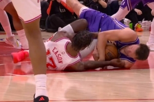 GIF-東契奇與伊森倒地爭球