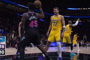 GIF-鮑威爾失誤~!東契奇拿球反擊轉身拋投~!!