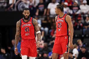 本場(chǎng)比賽,鵜鶘首發(fā)五人組多點(diǎn)開花,都得分上雙,合砍84分:墨菲27分5板2助1斷,薩迪克·貝20分6板6助1斷,錫安15分5板2助3斷,米西11分11板4助1帽,赫伯特·瓊斯11分3板2助2斷。